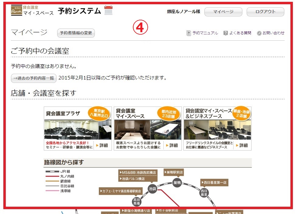 こちらより会議室の予約・予約者情報の変更等が行えます。