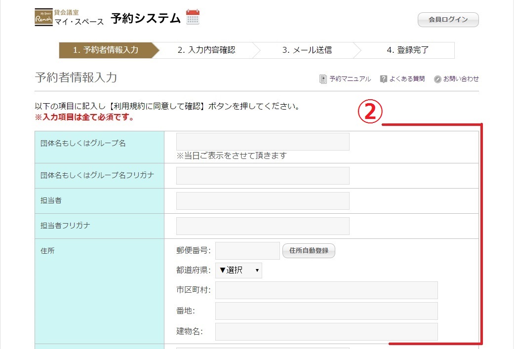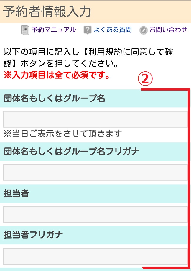 ②予約者の各項目を入力してください。入力項目は全て必須となっております。