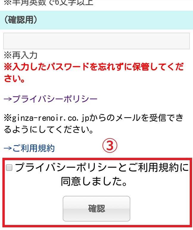 ご注意プライバシーポリシーと利用規約に同意にチェックを入れてください。