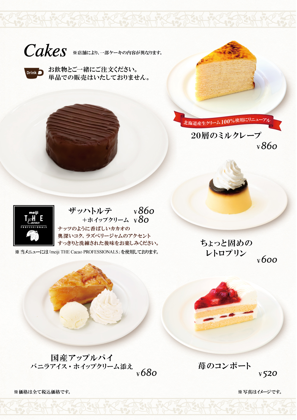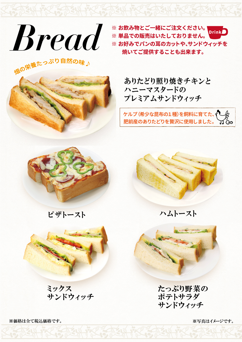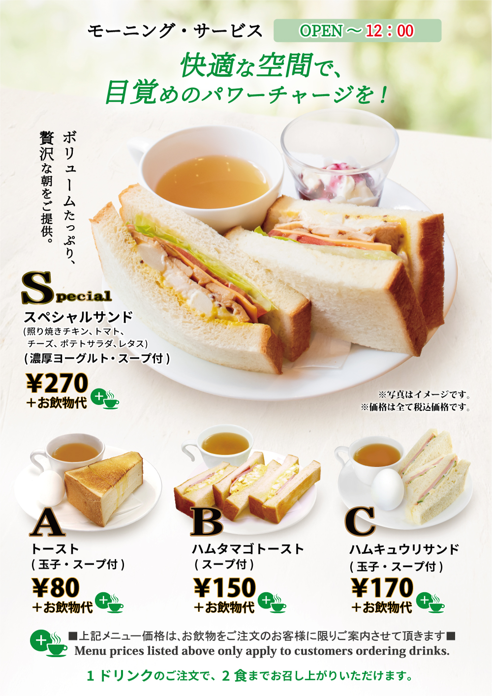 ※メニュー内容及び価格は店舗により異なりますので、店舗にてお問い合わせください。