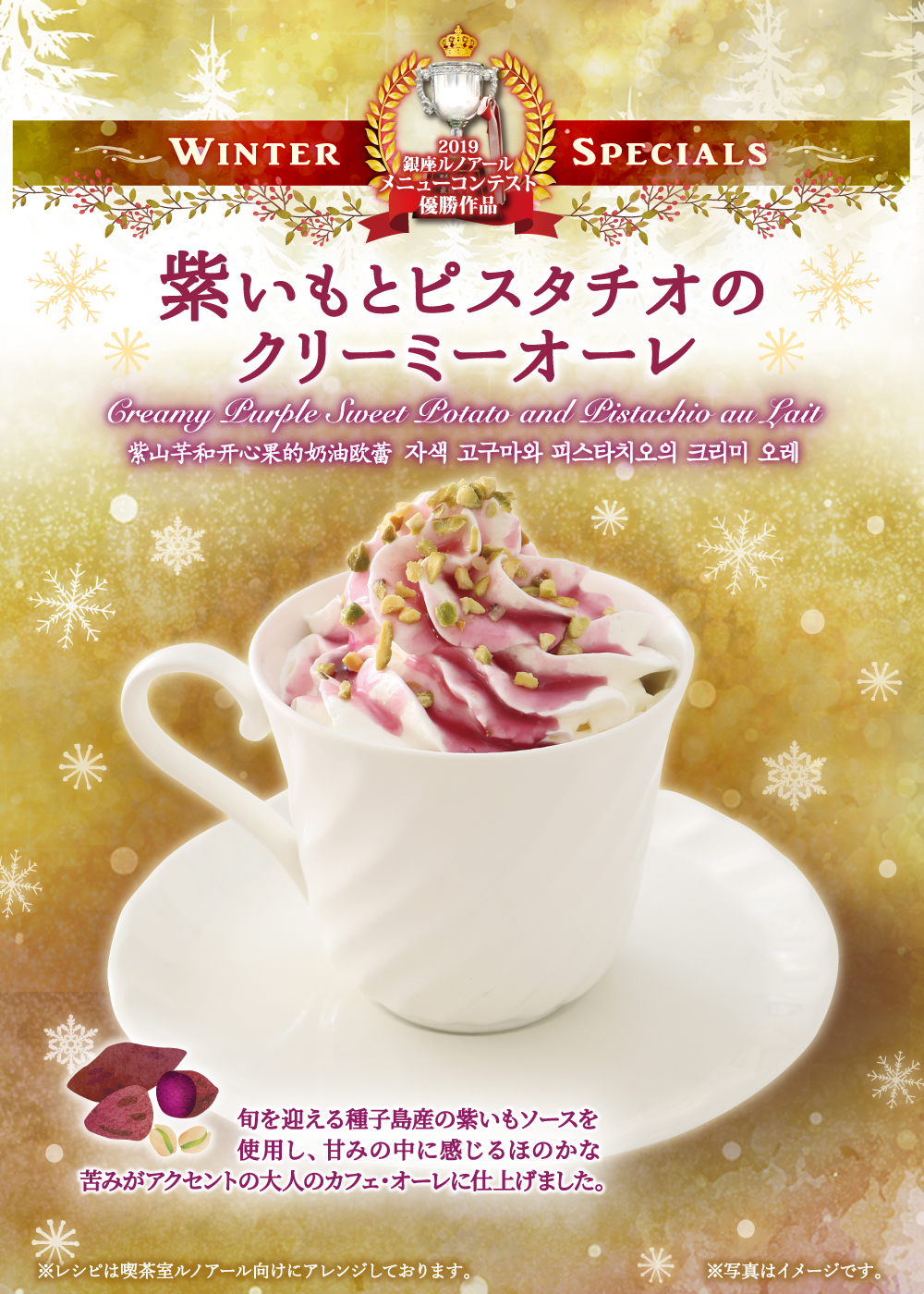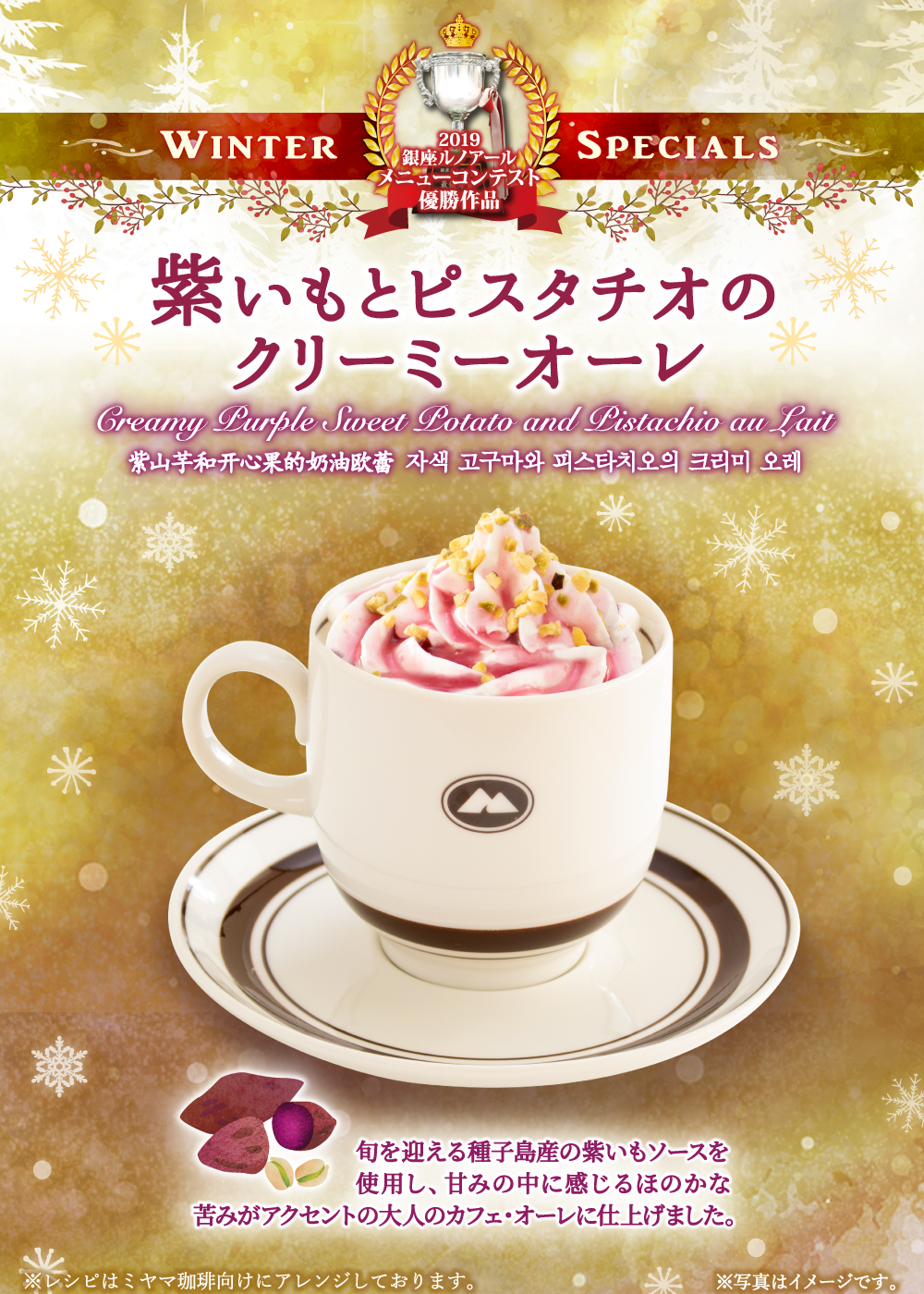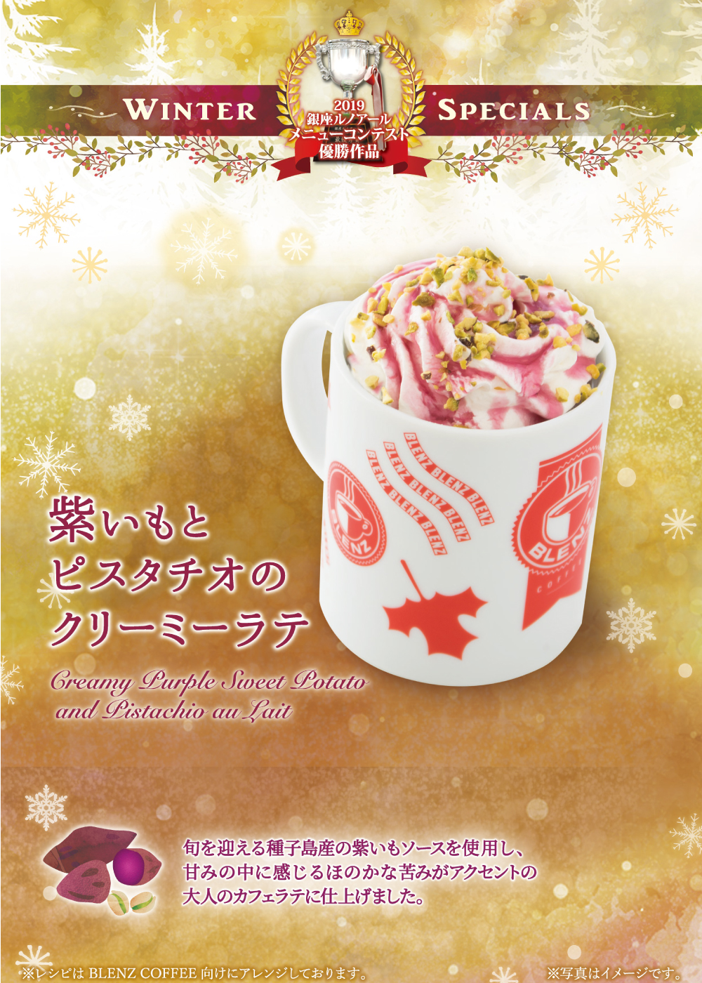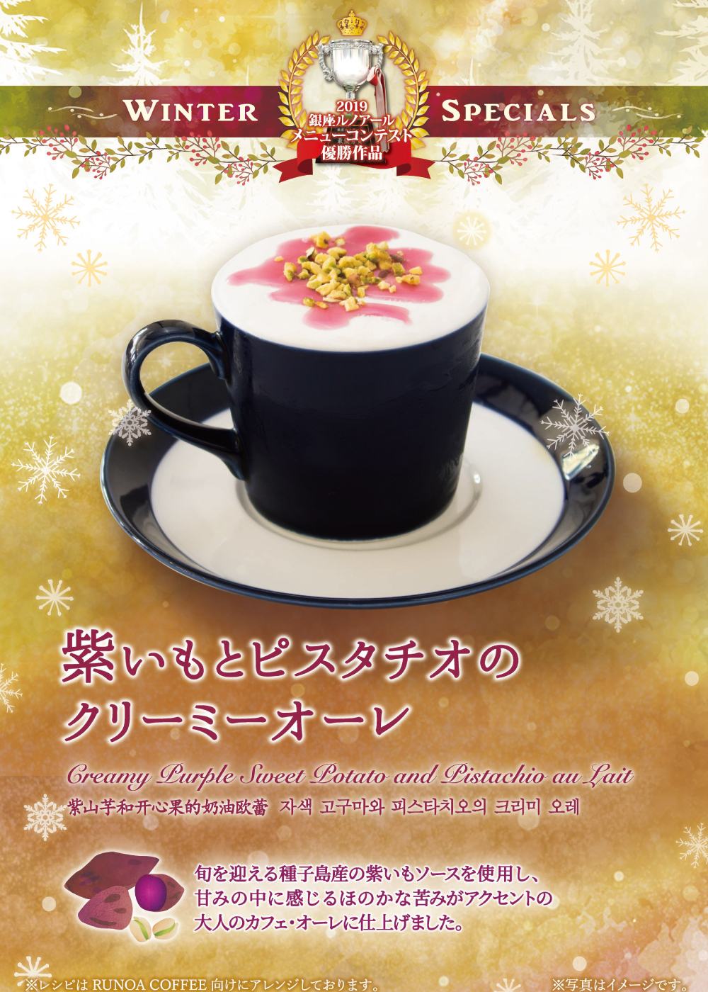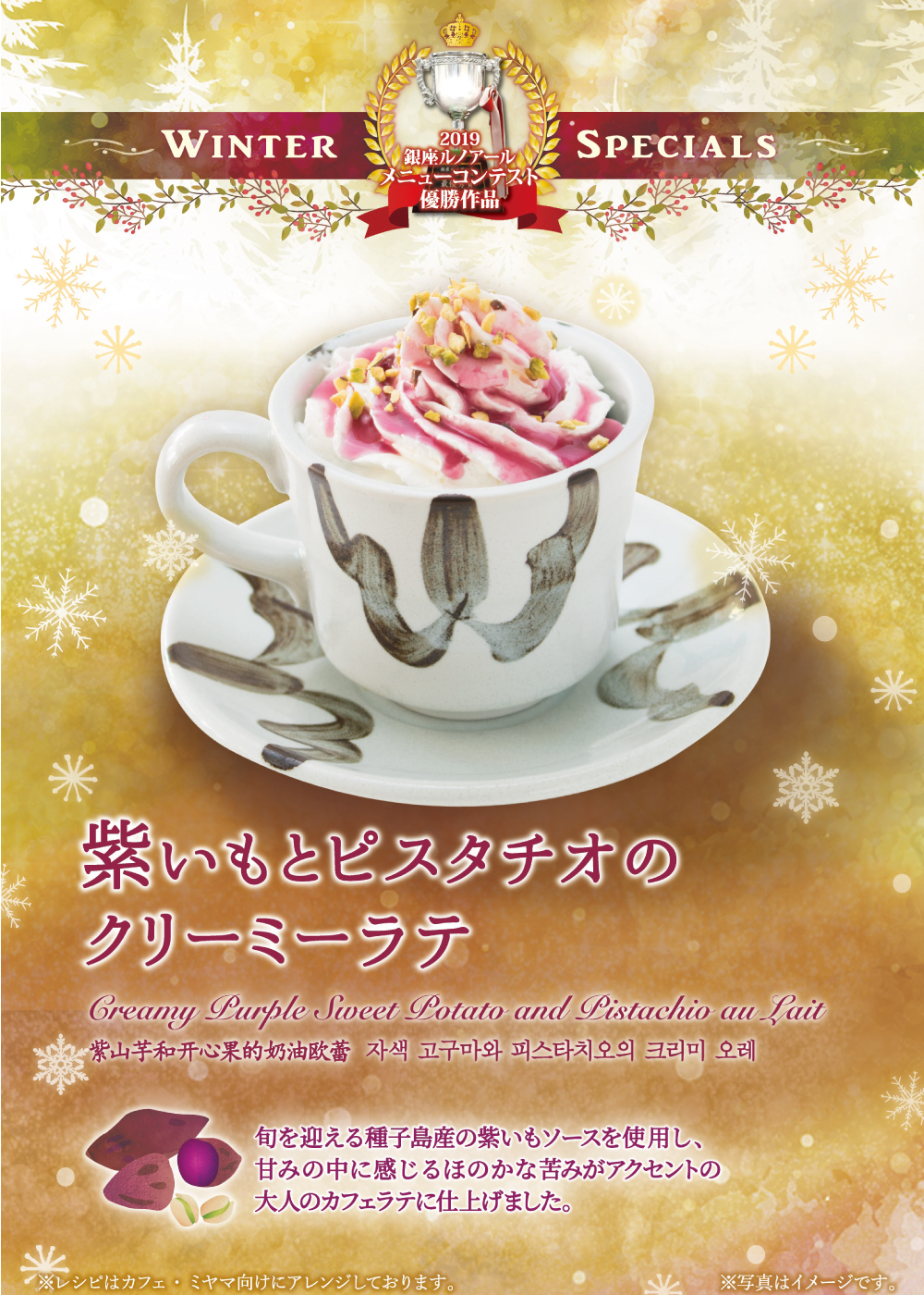 今回販売する商品は、本コンテストの2019年度グランプリ作品『紫いもとピスタチオのクリーミーラテ/オーレ』