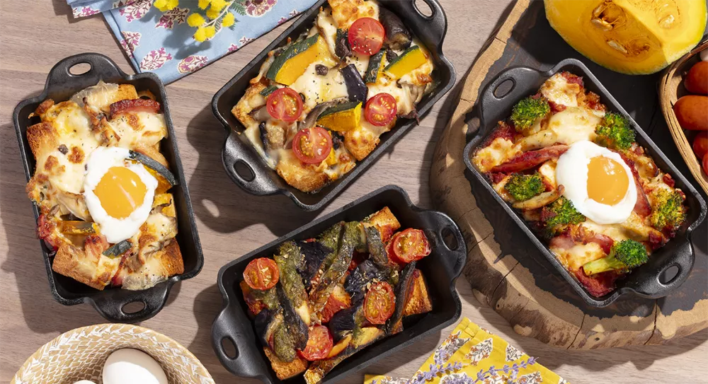 きのことベーコンのクリームグラタン〜温たまのせ〜
