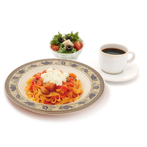 ナス、ズッキーニ赤ピーマンなどを合わせたトマトソースと、モッツァレラチーズを絡めながらお召し上がりください。