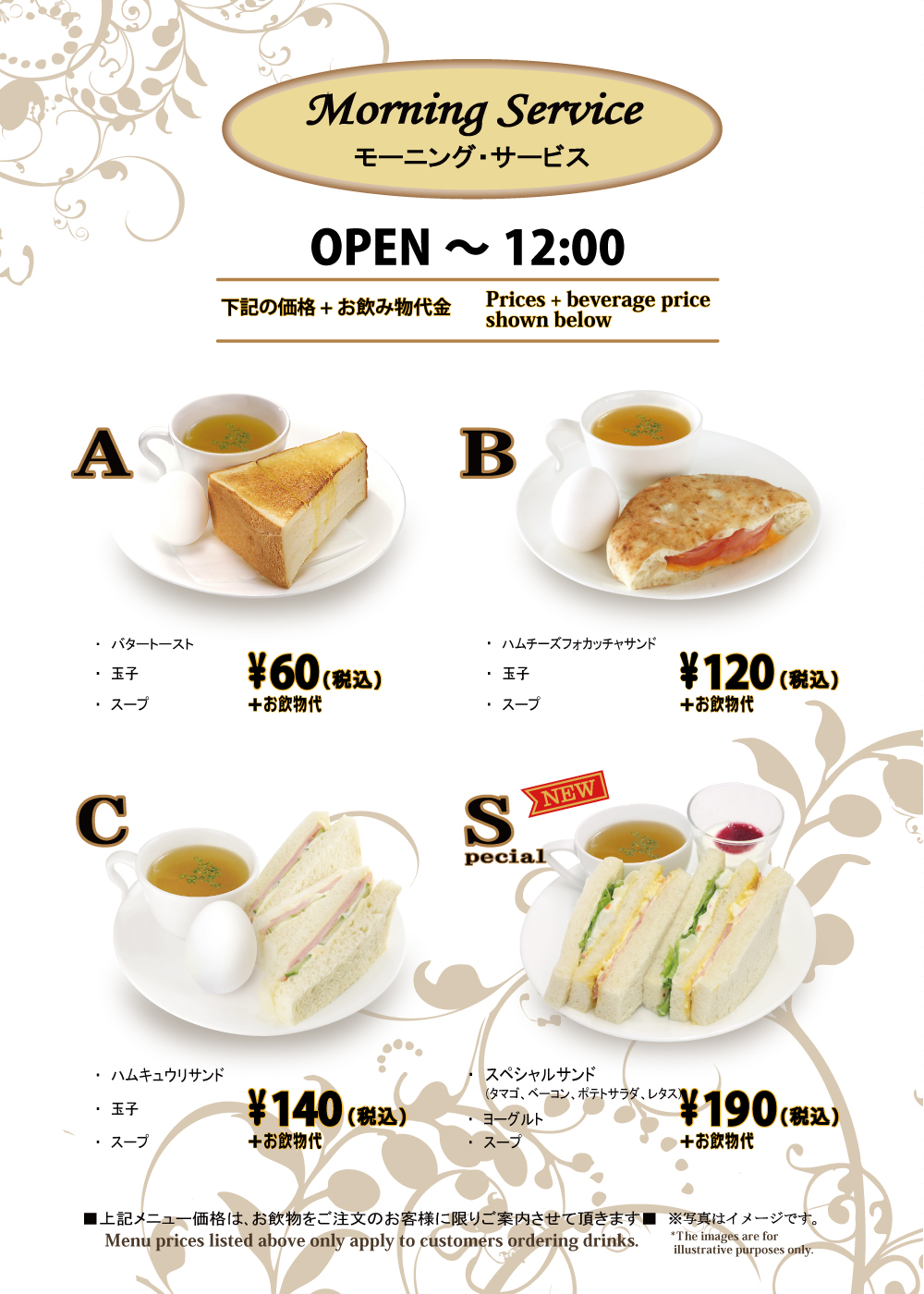 6月1日(木)開始 『モーニングメニュー スペシャルサンド』 2017年6月01日 Cafeルノアール各店舗におきまして、『モーニングメニュー スペシャルサンド』が新しくなりました。 モーニングS タマゴ、ベーコン、ポテトサラダ、レタスを挟んだボリュームのあるサンドウィッチ。セットでコンソメスープとヨーグルトも付いてます。 対象外店舗:日本橋三越前店