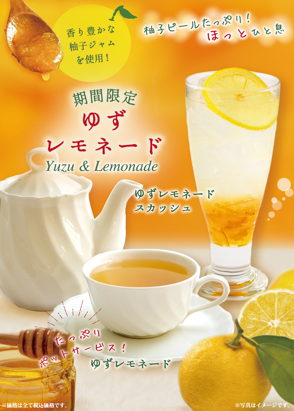 12月15日(火)開始 期間限定おすすめメニュー 2020年12月15日 期間限定 おすすめドリンク 2020年12月15日 開始 ゆずレモネード 寒い季節にホッと温まるレモネードにゆずジャムを加え、ポットでたっぷりご用意しました。ゆずの香りと共にごゆっくりおくつろぎください。 ゆずレモネードスカッシュ レモンスカッシュにゆずジャムを加え、すっきりと甘酸っぱく、香り高いリッチな炭酸ドリンクをご用意しました。 Cafeルノアール インフォメーション 季節のおすすめ メニュー 当店のこだわり カロリー・アレルギー物質情報 店舗検索 採用情報