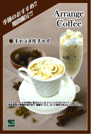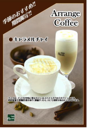 期間限定おすすめドリンクメニュー導入のご案内 2011年10月17日 Cafeルノアール各店舗におきまして、平成23年10月12日水曜日より下記の期間限定メニューが導入となります。 販売店舗のご案内 ニュー八重洲北口店 御徒町春日通り店 上野公園前店 日比谷店 秋葉原昭和通り口店 ヨドバシAkiba横店 国立南口駅前店 店舗名をクリックすると各店舗のご案内ページに移動します 販売店舗のご案内 日本橋三越前店 販売期間は平成23年10月12日水曜日から平成23年12月末日迄を予定しております。 開始日、終了日につきましては、店舗により若干異なる場合がございます。何卒ご了承下さい。 店舗名をクリックすると各店舗のご案内ページに移動します