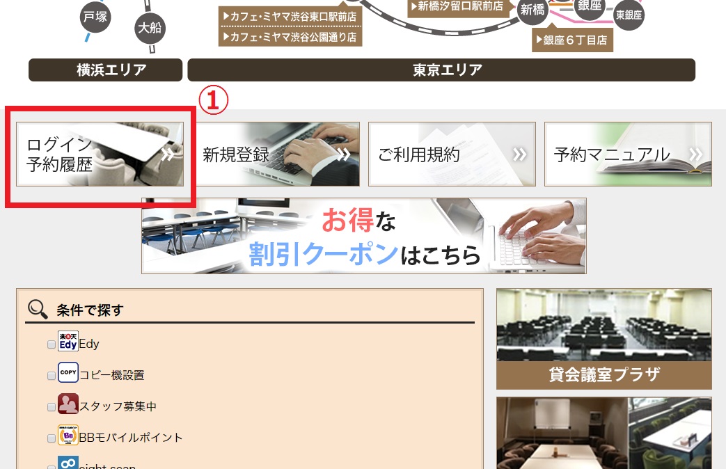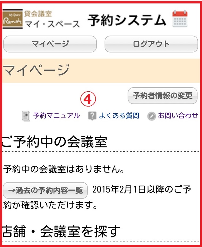 こちらより会議室の予約・予約者情報の変更等が行えます。