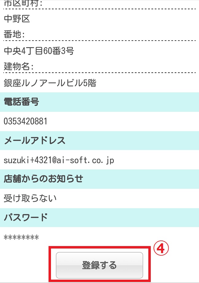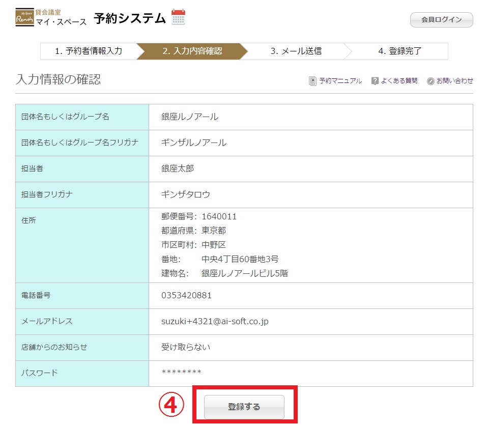 ④入力した内容に間違いがないかご確認の上、【登録する】ボタンを押してください。