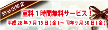 喫茶室ルノアール四谷店マイ・スペースにおきまして、平成28年7月15日(金)~平成28年9月30日(金)の期間、室料1時間無料キャンペーンを実施いたします。キャンペーン期間中ご利用日当日に下記印刷用無料券をプリントアウトし、貸会議室ご利用当日にご持参ください。