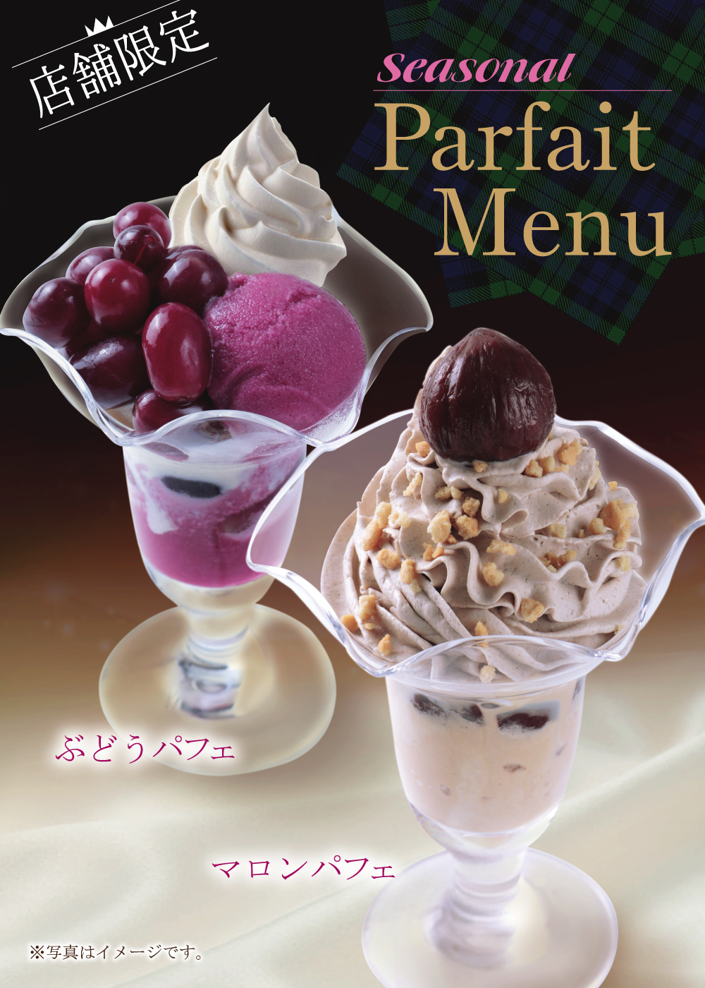 店舗限定 季節のおすすめデザート 2017年10月16日 店舗限定 パフェメニュー 2017年9月下旬 開始 ぶどうパフェ イタリア産黒ブドウのジェラートと、ブドウの果実をたっぷり乗せた贅沢なパフェです。 マロンパフェ イタリアンマロンをふんだんに使ったマロンアイスと、マロンペーストを混ぜ込んだ豊かな風味のマロンホイップを盛り込んだ贅沢なパフェです。 対象店舗 銀座マロニエ通り店 銀座2丁目店 池袋サンシャイン60通り店 東池袋1丁目店 京成上野駅前店 御徒町南口駅前店 上野しのばず口店 六本木ラピロス店 秋葉原店 秋葉原電気街口店 新宿アルタ横店 新大久保駅前店