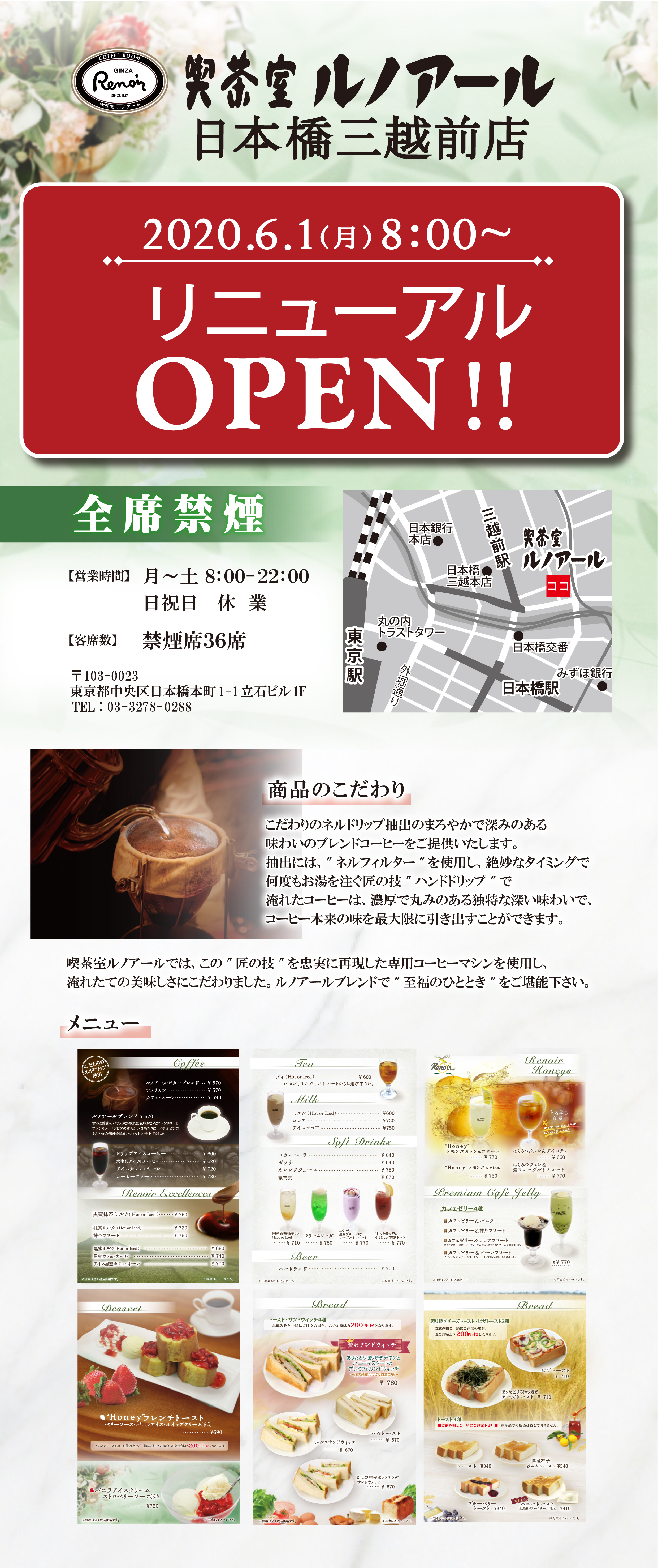 6月1日(月) 日本橋三越前店 リニューアルオープンのお知らせ