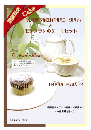 期間限定ケーキセットメニュー ロイヤルハニーミルクティとモンブラン少し贅沢なケーキセット実施店舗のご案内