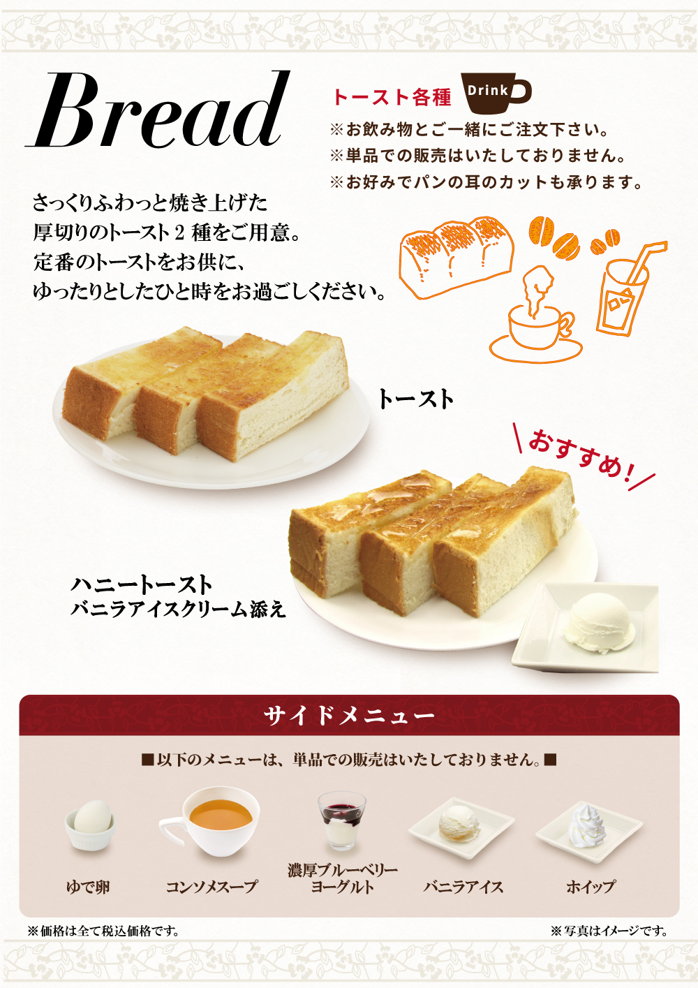 ※メニュー内容及び価格は店舗により異なりますので、店舗にてお問い合わせください。